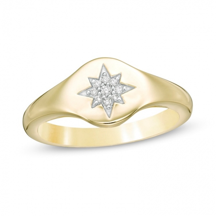 1/20 CT. T.W. Diamond Tiara Star Signet Ring in 10K Gold:1/20 CT. T.W. Diamond Tiara Star Signet Ring in 10K Gold