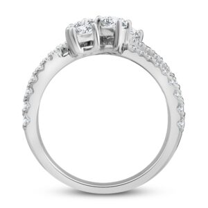 This enchanting diamond ring collection features five distinctively-shaped diamonds, symbolic of everything she means to you. Each diamond shape has a different meaning, from integrity and wisdom, to confidence, totality, and elegance. The beautiful 10K white gold ring features an oval-cut, emerald-cut, pear-shaped, round-cut, and princess-cut diamond at the center, while ribbons of brilliant round-cut diamonds flow outward. The gorgeous ring has a total diamond weight of 1 1/2 carats.